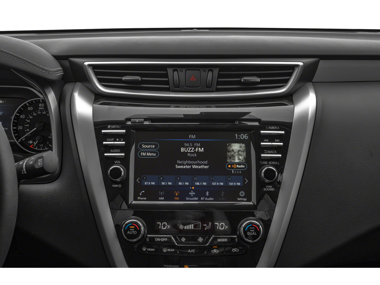 - Radio: AM/FM/CD/MP3/WMA Audio System -inc: 6 speakers, auxiliary audio input jack, SiriusXM satellite radio, NissanConnect featuring Apple CarPlay and Android Auto, 8" color display w/multi-touch control, 2 front illuminated USB connection ports (1 type-A, 1 type-C) for iPod interface and other compatible devices, Bluetooth® hands-free phone system, streaming audio via Bluetooth®, hands-free text-messaging assistant and 2 rear illuminated USB charge ports (1 type-A, 1 type-C)